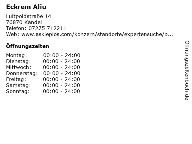 | Öffnungszeiten Eckrem Aliu in Kandel anzeigen | |
