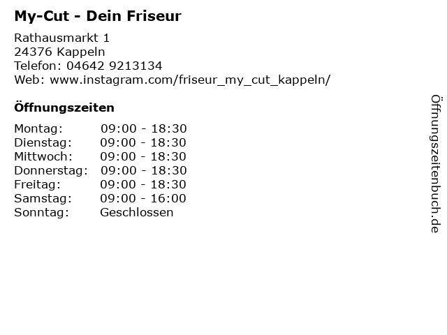 | Öffnungszeiten My-Cut - Dein Friseur in Kappeln anzeigen | |