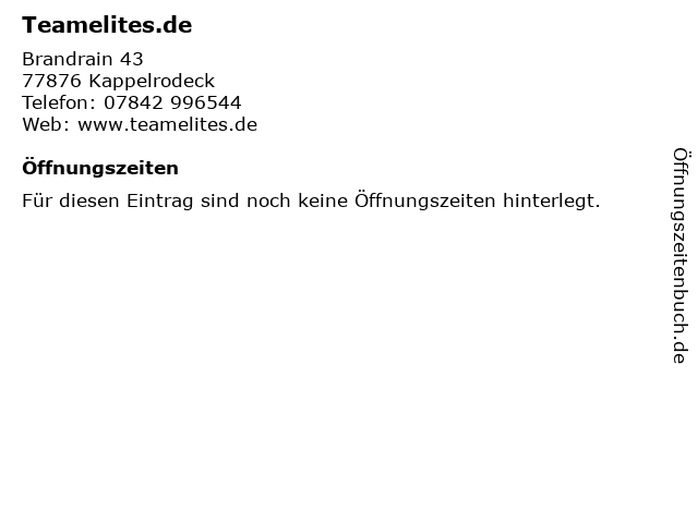 | Öffnungszeiten Teamelites.de in Kappelrodeck anzeigen | |