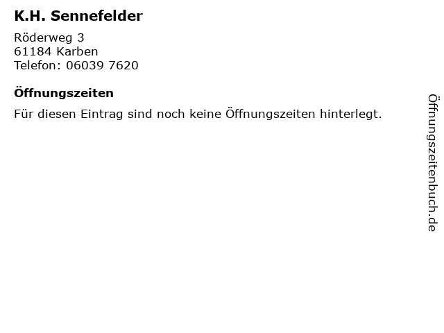 | Öffnungszeiten K.H. Sennefelder in Karben anzeigen | |