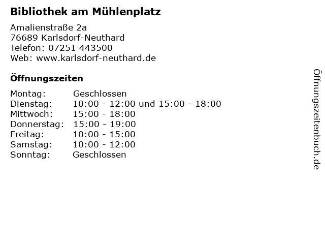 Branchen & Suchbegriffe zu Bibliothek am Mühlenplatz:bibliothek, bücherei, karlsdorf, mühlenplatz, neuthard |