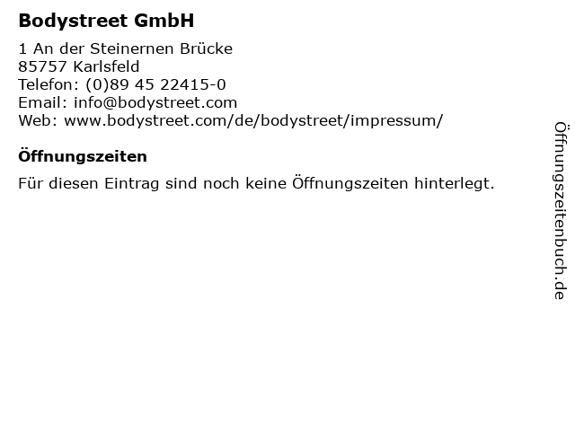 | Öffnungszeiten Bodystreet GmbH in Karlsfeld anzeigen | |
