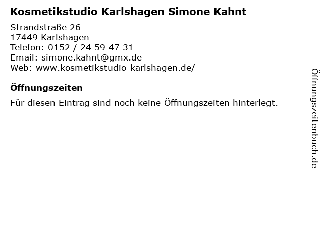 | Kosmetikstudio Karlshagen Simone Kahnt anrufen | |