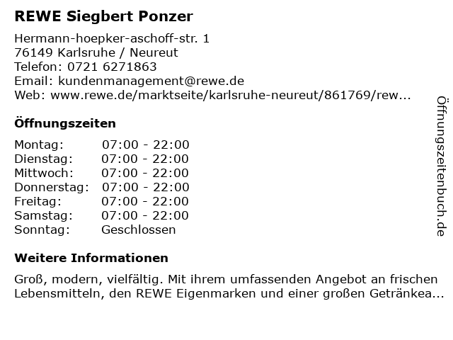 Hinweis: Groß, modern, vielfältig. Mit ihrem umfassenden Angebot an frischen Lebensmitteln, den REWE Eigenmarken und einer großen Getränkeauswahl, bieten REWE Supermärkte alles was Sie brauchen an einem Ort.