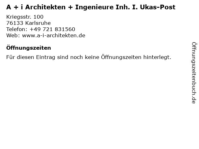 Branchen & Suchbegriffe zu A + i Architekten + Ingenieure Inh. I. Ukas-Post:architekten, i., ingenieure, post, ukas |
