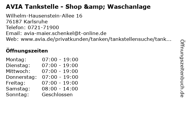 Öffnungszeiten AVIA Tankstelle - Shop & Waschanlage in Karlsruhe anzeigen