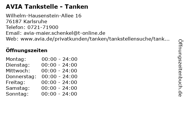 | Öffnungszeiten AVIA Tankstelle - Tanken in Karlsruhe anzeigen | |