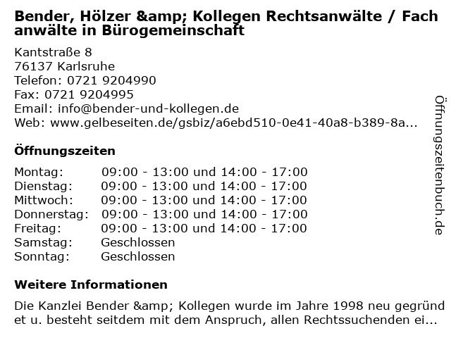 Branchen & Suchbegriffe zu Bender, Hölzer & Kollegen Rechtsanwälte / Fachanwälte in Bürogemeinschaft:anwälte für arbeitsrecht, anwälte für scheidungsrecht, anwälte für unterhaltsrecht, bender, bürogemeinschaft, fachanwälte, hölzer, kollegen, rechtsanwälte |