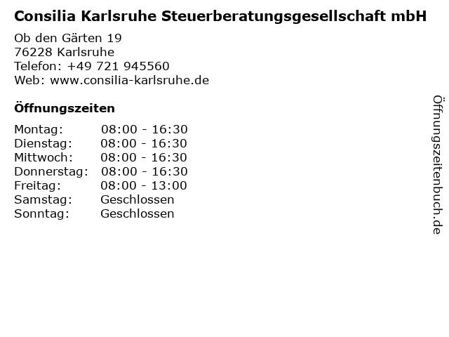 Branchen & Suchbegriffe zu Consilia Karlsruhe Steuerberatungsgesellschaft mbH:consilia, mbh, steuerberater, steuerberatungsgesellschaft |