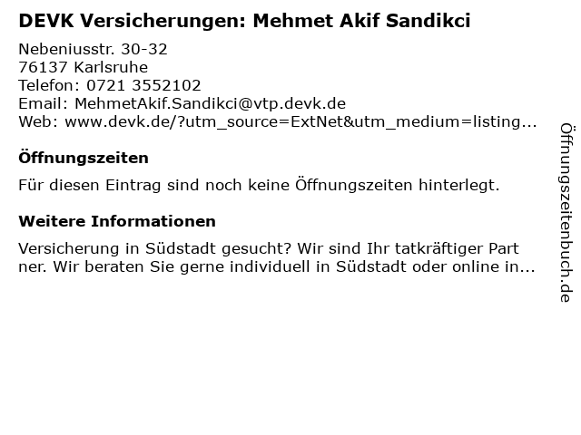 | DEVK Versicherungen: Mehmet Akif Sandikci anrufen | |
