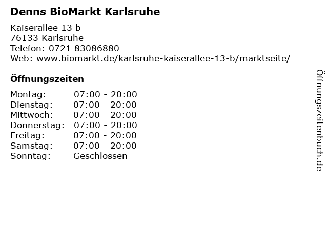 | Öffnungszeiten Denns BioMarkt Karlsruhe in Karlsruhe anzeigen | |