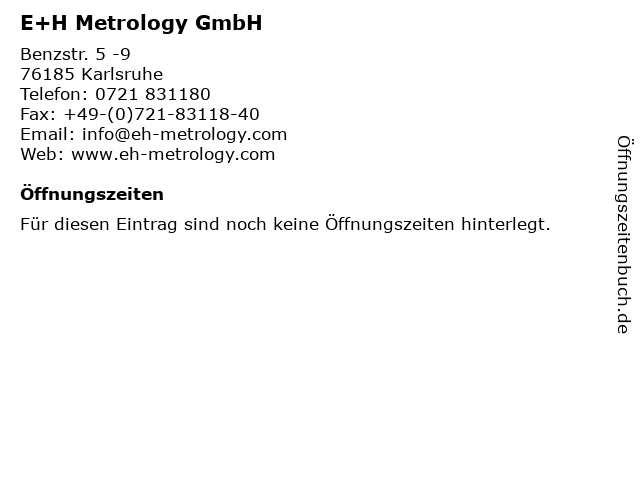 | Öffnungszeiten E+H Metrology GmbH in Karlsruhe anzeigen | |