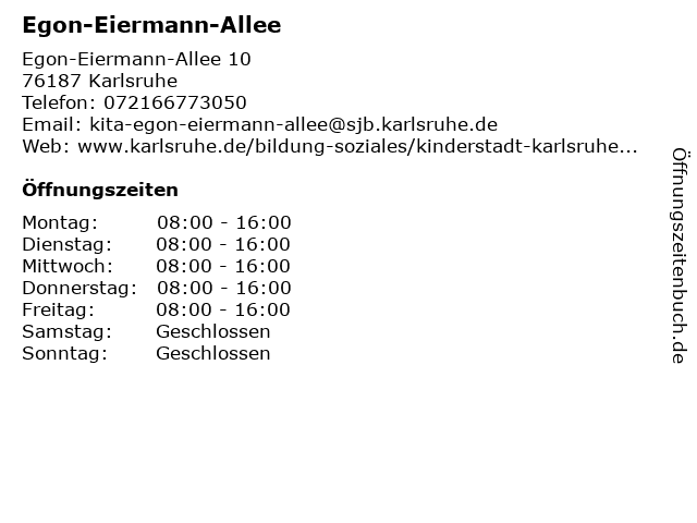| Öffnungszeiten Egon-Eiermann-Allee in Karlsruhe anzeigen | |