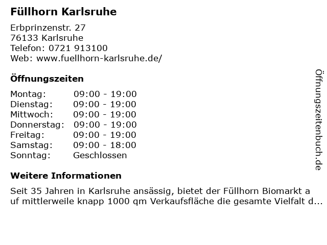 | Öffnungszeiten Füllhorn Karlsruhe in Karlsruhe anzeigen | |