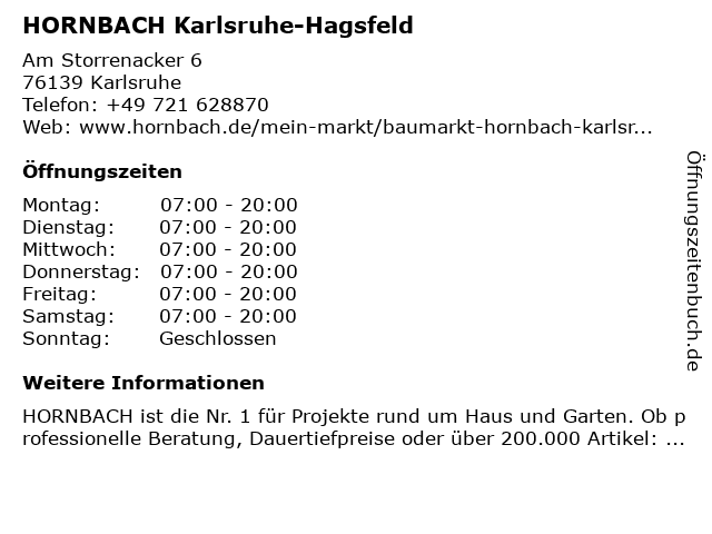 6 HORNBACH Gartencenter Karlsruhe Grünwinkel (Entfernung: 8,02 km) Fritz-Haber-Straße 1, 76185 Karlsruhe |