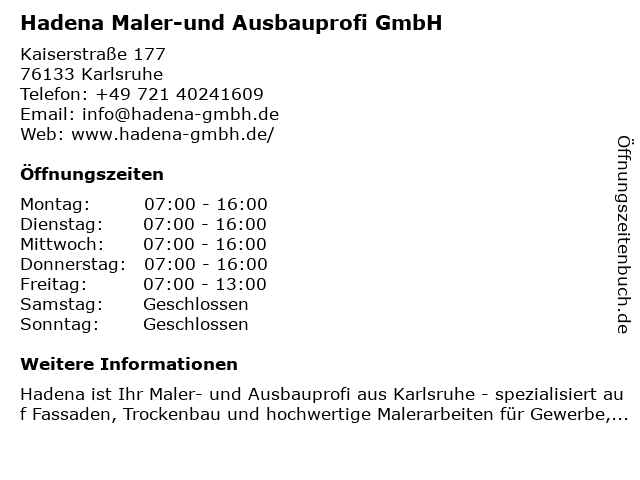 Branchen & Suchbegriffe zu Hadena Maler-und Ausbauprofi GmbH:ausbauprofi, ausbildungsbetrieb maler, bodenleger karlsruhe, brandschutz trockenbau, fassadenanstrich karlsruhe, fassadenprofi karlsruhe, fassadensanierung karlsruhe, fliesenleger karlsruhe, geprüfter malerbetrieb, hadena, innenausbau karlsruhe, maler, maler karlsruhe, malerarbeiten innen & außen, malerarbeiten karlsruhe, malerbetrieb karlsruhe, malerfirma karlsruhe, schimmelbeseitigung karlsruhe, stuckateur karlsruhe, tapezierarbeiten karlsruhe, trockenbau karlsruhe, wasserschadensanierung karlsruhe, wärmedämmung karlsruhe |