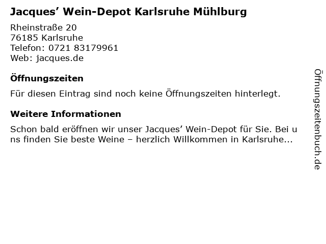 | Jacques’ Wein-Depot Karlsruhe Mühlburg anrufen | |