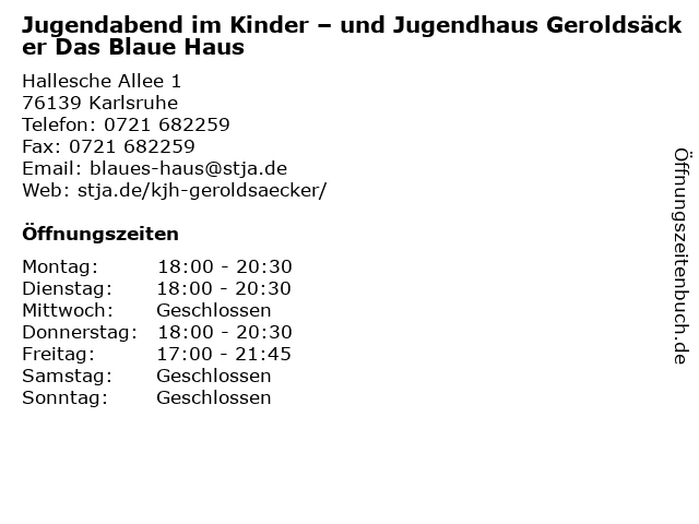 1 mp13 im Kinder – und Jugendhaus Geroldsäcker Das Blaue Haus (Entfernung: 0,00 km) Hallesche Allee 1, 76139 Karlsruhe 2 Kindernachmittag im Kinder – und Jugendhaus Geroldsäcker Das Blaue Haus (Entfernung: 0,00 km) Hallesche Allee 1, 76139 Karlsruhe 3 Teenienachmittag im Kinder – und Jugendhaus Geroldsäcker Das Blaue Haus (Entfernung: 0,00 km) Hallesche Allee 1, 76139 Karlsruhe 4 Video Clip Dancing im Kinder – und Jugendhaus Geroldsäcker Das Blaue Haus (Entfernung: 0,00 km) Hallesche Allee 1, 76139 Karlsruhe 5 Minikindergarten Kinder – und Jugendhaus Waldstadt (Entfernung: 0,61 km) Neisser Straße 8, 76139 Karlsruhe 6 Jugendberatung im Kinder – und Jugendhaus Waldstadt (Entfernung: 0,61 km) Neisser Straße 8, 76139 Karlsruhe |