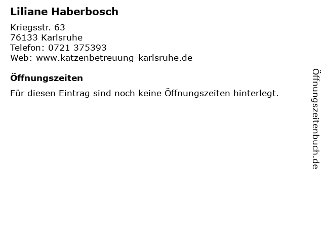 | Öffnungszeiten Liliane Haberbosch in Karlsruhe anzeigen | |