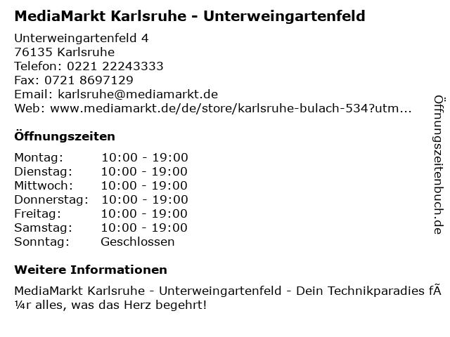 Branchen & Suchbegriffe zu MediaMarkt Karlsruhe - Unterweingartenfeld:anbieter für telekommunikationsgeräte, computergeschäft, geschäft für handyzubehör, geschäft für heimaudiosysteme, geschäft für videospiele, handyreparaturgeschäft, haushaltsgeräte, mediamarkt, mobiltelefongeschäft, unterweingartenfeld |