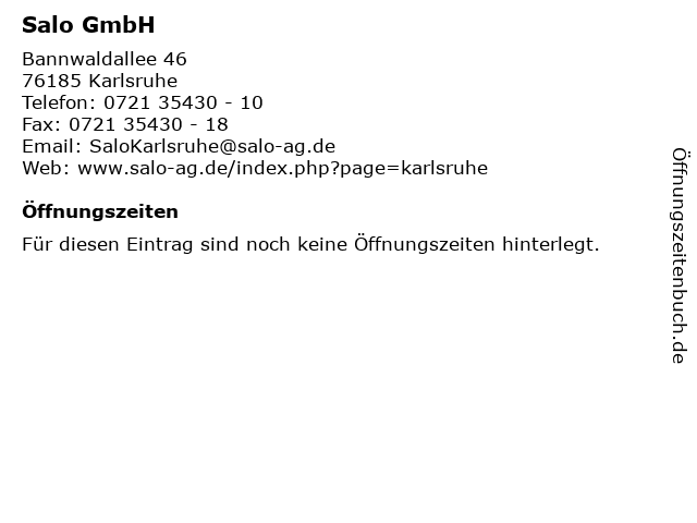 | Öffnungszeiten Salo GmbH in Karlsruhe anzeigen | |