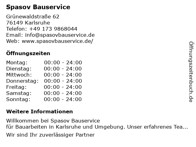 | Öffnungszeiten Spasov Bauservice in Karlsruhe anzeigen | |