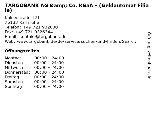 1 TARGOBANK AG & Co. KGaA - (Geldautomat Filiale) (Entfernung: 19,09 km) Huttenstraße 1-3, 76646 Bruchsal 3 Michelin Reifenwerke KGaA Bereich Vertrieb u. Werk (Entfernung: 3,97 km) Michelinstr. 4, 76185 Karlsruhe 4 6 TARGOBANK AG & Co. KGaA - (Geldautomat Filiale) (Entfernung: 52,76 km) Bahnahofstraße 17-19, 67059 Ludwigshafen |