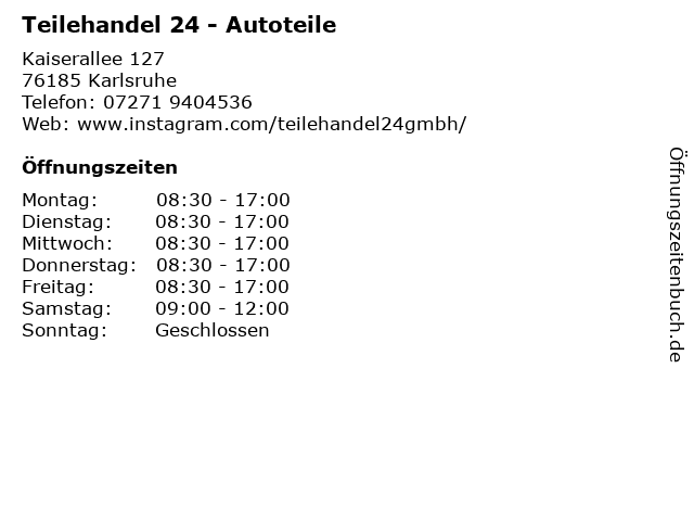| Öffnungszeiten Teilehandel 24 - Autoteile in Karlsruhe anzeigen | |