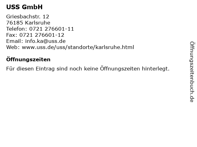 | Öffnungszeiten USS GmbH in Karlsruhe anzeigen | |