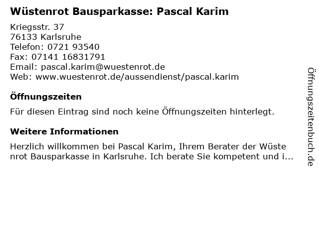 | Wüstenrot Bausparkasse: Pascal Karim anrufen | |