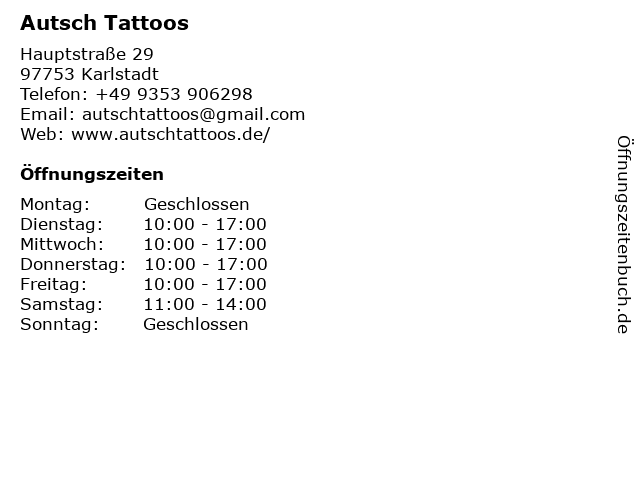 | Öffnungszeiten Autsch Tattoos in Karlstadt anzeigen | |