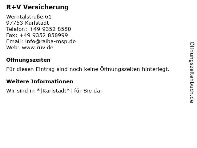 Öffnungszeiten R+V Versicherung in Karlstadt anzeigen