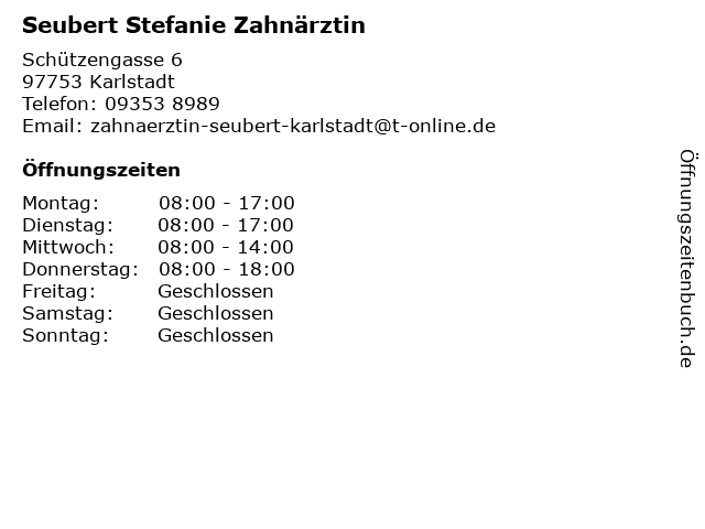 | Öffnungszeiten Seubert Stefanie Zahnärztin in Karlstadt anzeigen | |