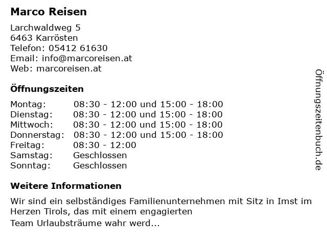 | Adresse Marco Reisen in Karrösten anzeigen |