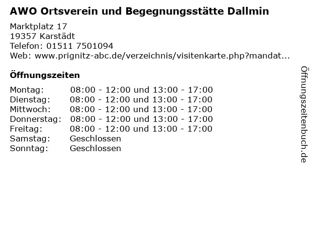 Branchen & Suchbegriffe zu AWO Ortsverein und Begegnungsstätte Dallmin:awo, begegnungsstätte, dallmin, ortsverein |