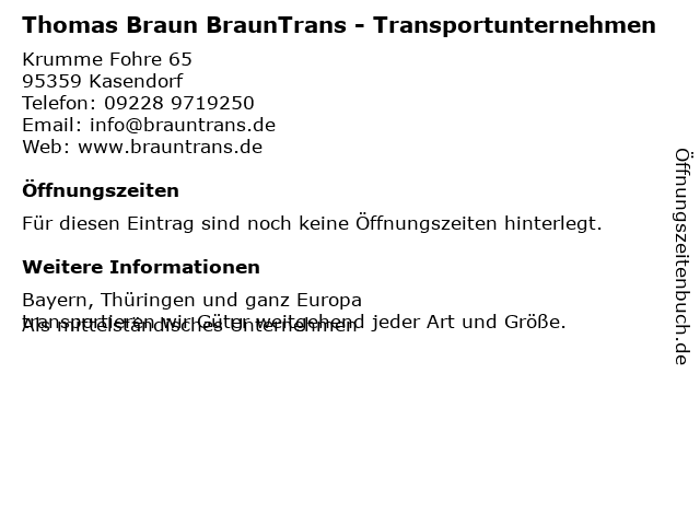 | Thomas Braun BraunTrans - Transportunternehmen anrufen | |