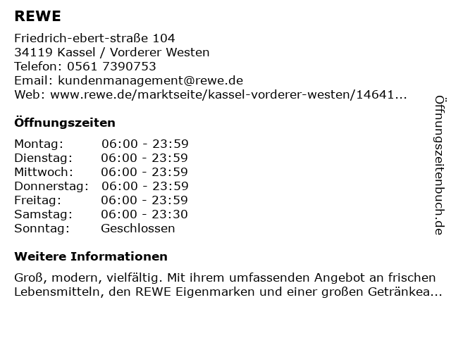 | Öffnungszeiten REWE in Kassel / Vorderer Westen anzeigen | |