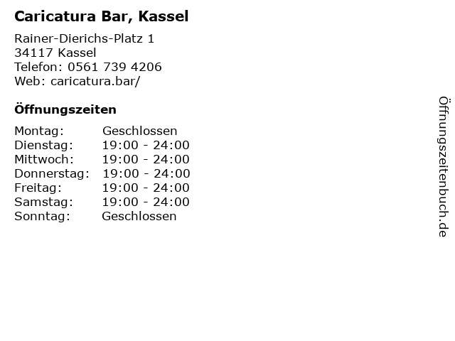 | Öffnungszeiten Caricatura Bar, Kassel in Kassel anzeigen | |