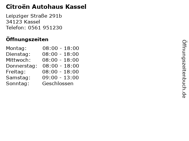 | Öffnungszeiten Citroën Autohaus Kassel in Kassel anzeigen | |