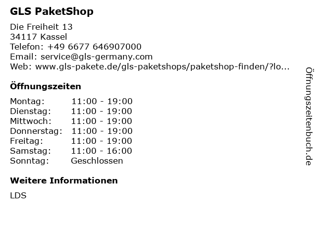 Öffnungszeiten GLS PaketShop in Kassel anzeigen