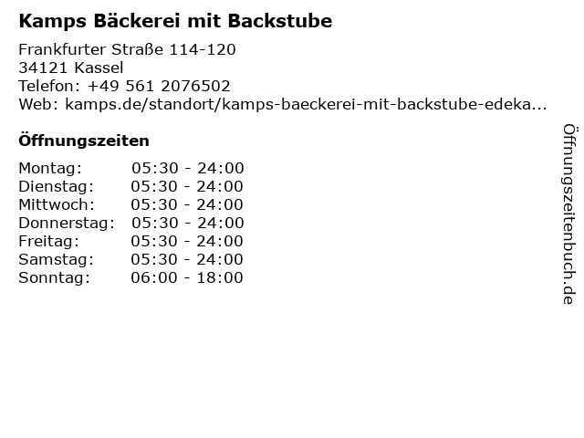 | Öffnungszeiten Kamps Bäckerei mit Backstube in Kassel anzeigen | |