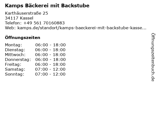 | Öffnungszeiten Kamps Bäckerei mit Backstube in Kassel anzeigen | |