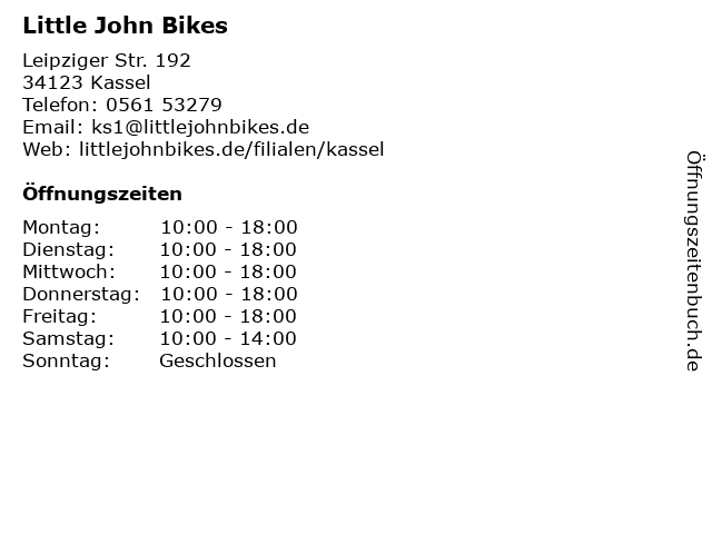 | Öffnungszeiten Little John Bikes in Kassel anzeigen | |