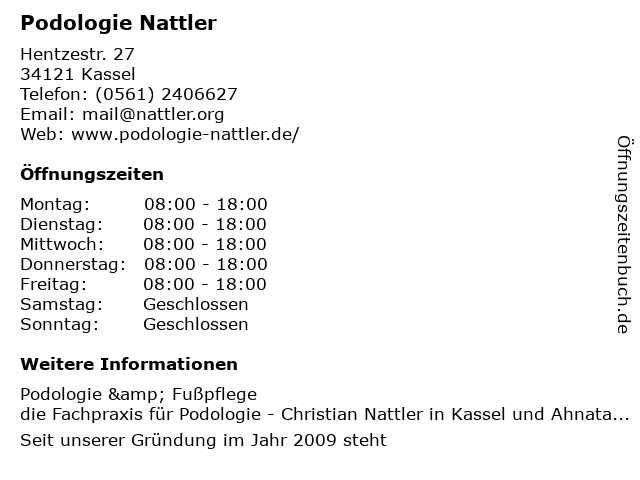 Öffnungszeiten Podologie Nattler in Kassel anzeigen | |