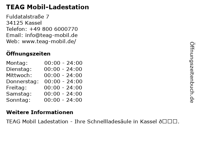 TEAG Mobil-Ladestation in Kassel: Telefonnummer, Öffnungszeiten und Adresse