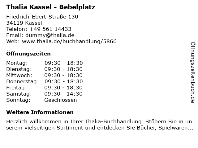 | Öffnungszeiten Thalia Kassel - Bebelplatz in Kassel anzeigen | |