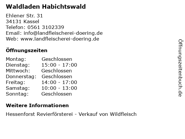 | Öffnungszeiten Waldladen Habichtswald in Kassel anzeigen | |