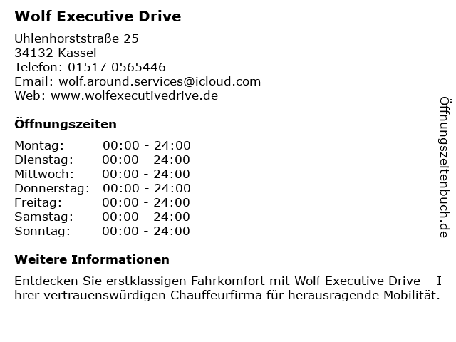 | Öffnungszeiten Wolf Executive Drive in Kassel anzeigen | |