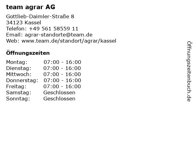 | Öffnungszeiten team agrar AG in Kassel anzeigen | |