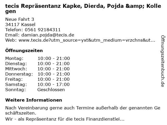 3 Ambulantes Haut- u. Laserzentrum Dr.med. E. Knittl, R. Ogrysek u. Kollegen (Entfernung: 0,19 km) Wolfsschlucht 6a, 34117 Kassel 4 tecis Repräsentanz Wunsch, Hammerlindl und Kollegen (Entfernung: 0,34 km) Weißenburgstraße 10, 34117 Kassel 5 Bank für Sozialwirtschaft AG - Repräsentanz Kassel (Entfernung: 0,43 km) Obere Königsstrasse 30, 34117 Kassel 6 Dr.med. Basche u. Kollegen Ärzte für Radiologie (Entfernung: 0,48 km) Kurfürstenstr. 10-12, 34117 Kassel |